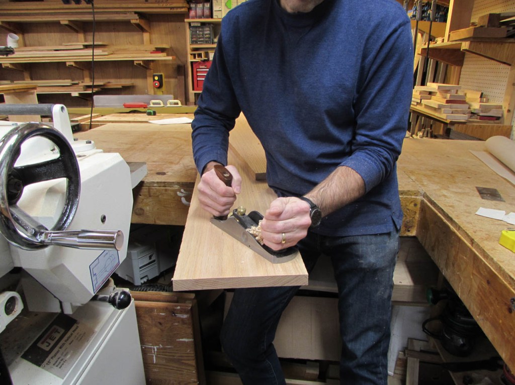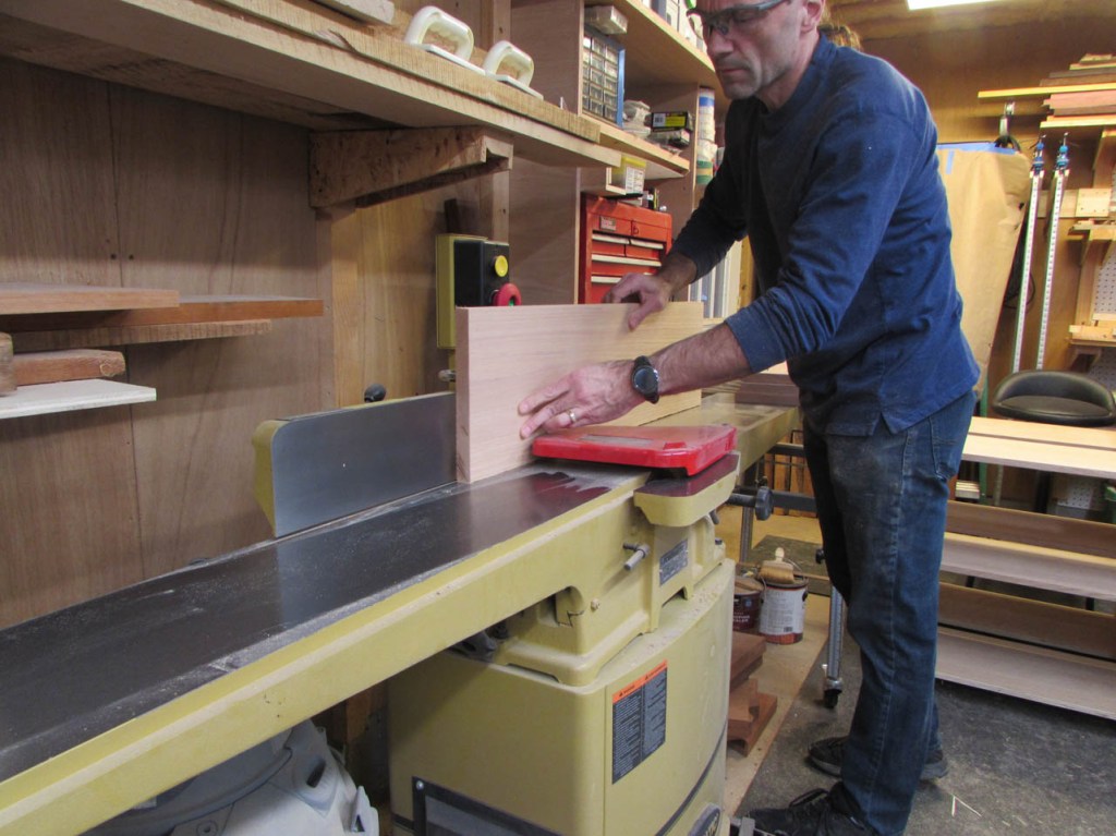 After cutting the boards in half, I jointed the edges so that I had a good, straight edge for gluing.
