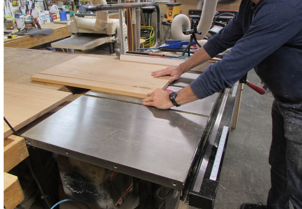 After ripping the 17″ width, I used the cross-cut sled to square up the ends and cut the 34″ length.
