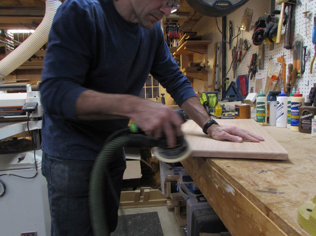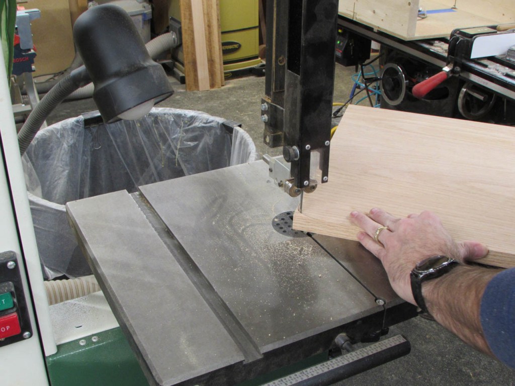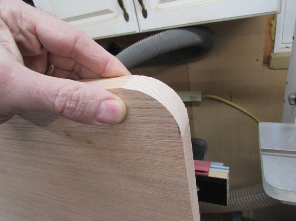 I used the band saw to rough out the curve and the 6″ wide belt sander to clean it up.