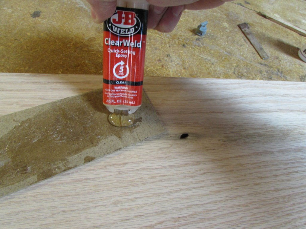 I also have a knot hole that I want to fill. I masked that off as well and filled it with some quick-setting epoxy.