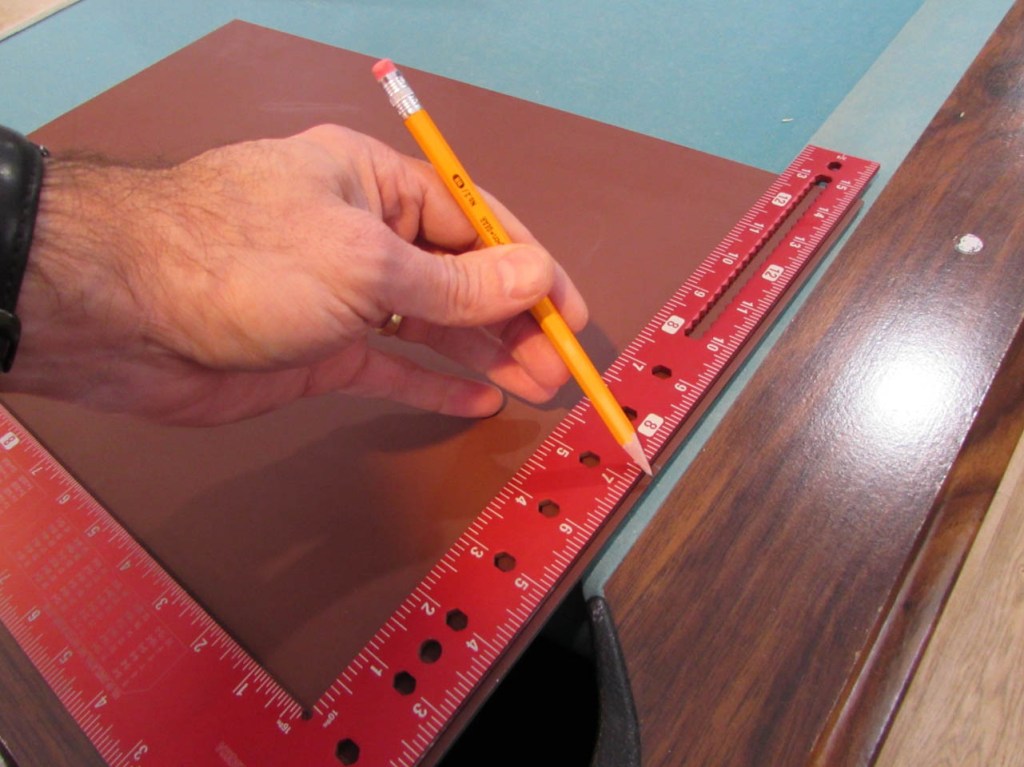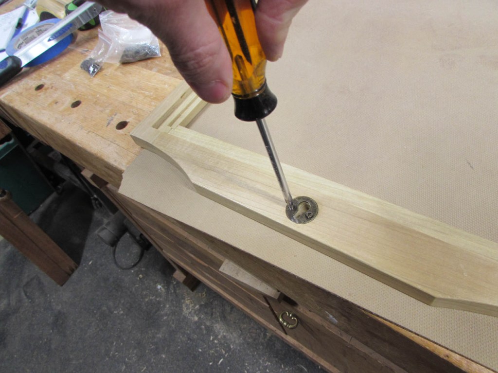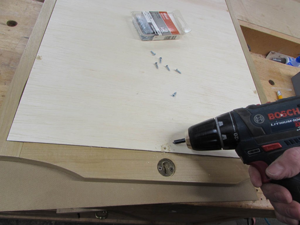 Then I installed the backer plate by pre-drilling and counter-sinking six #4 screws along the edges.