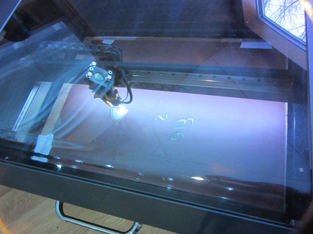 Then I loaded up my prepared files and started the laser engraving. I was going to list my power and speed settings but they are subjective. I will explain why.