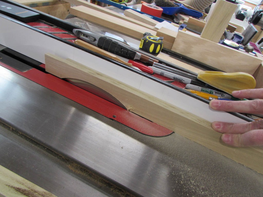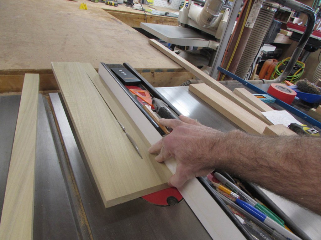 I have a nice piece of poplar that is a nice shade of green that will match the paneling in my father’s office. I cut it into three 1.5″ wide pieces and left the fourth a bit wider. That will be the top and I will figure out it’s shape later.