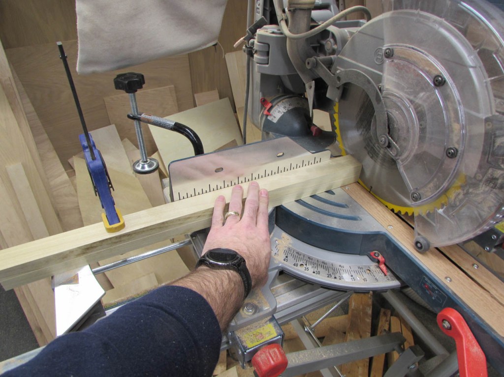 I cut the two sides to the same length on the chop saw by clamping them together first. I did the same for the top and bottom pieces which were shorter.