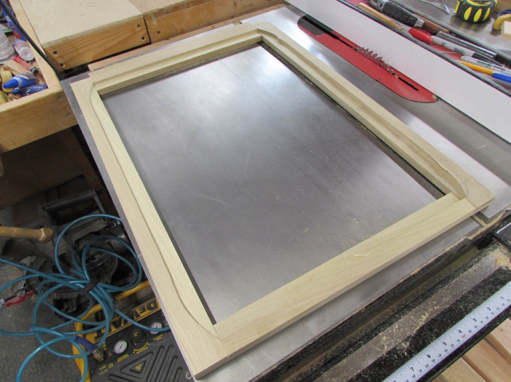 Then I clamped down the frame and gently pared away the waste material with a very sharp chisel.