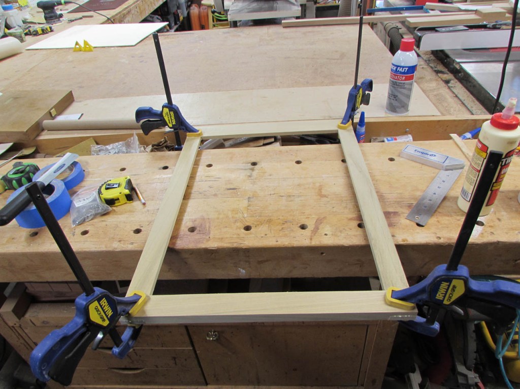 I worked one corner at a time, carefully verifying that each corner was perfectly square before and after clamping.