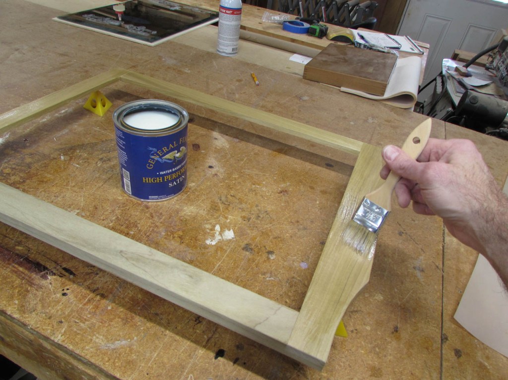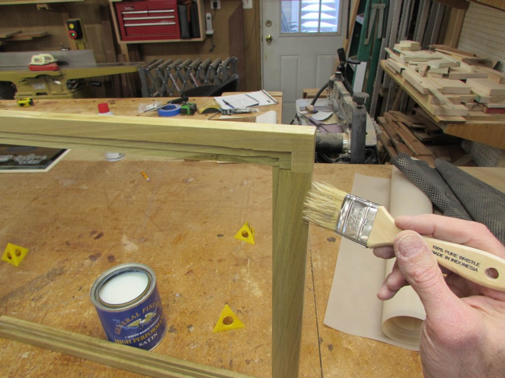 After the first coat, I sand down everything again with 400 grit paper to smooth out the raised grain.