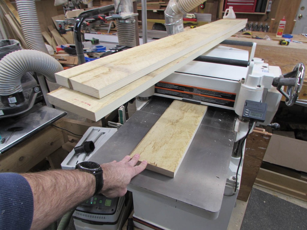 After jointing one face and one edge, I ran the boards through the planer to make them 3/4″ thick.