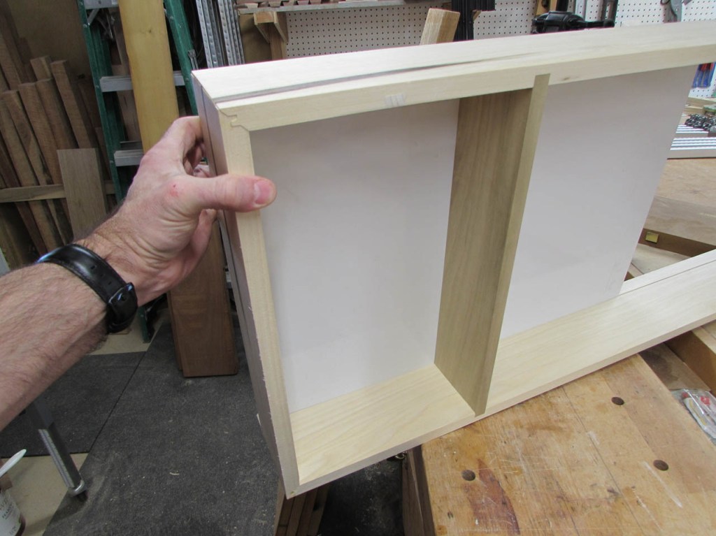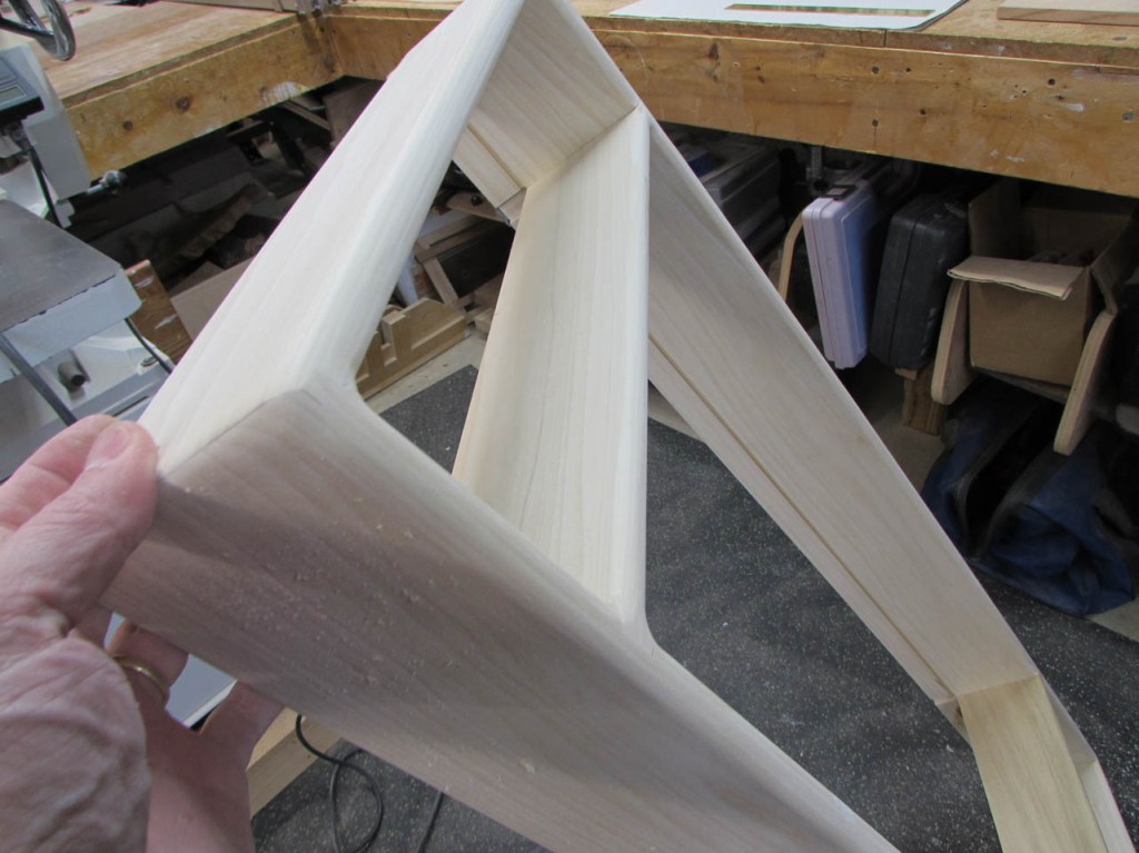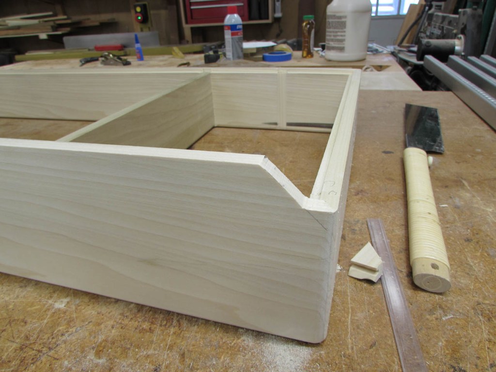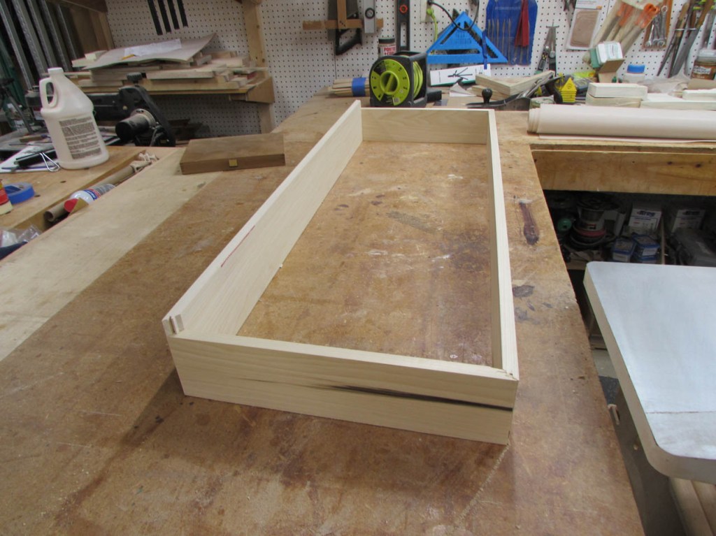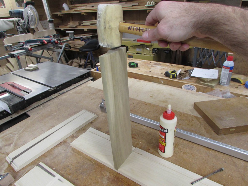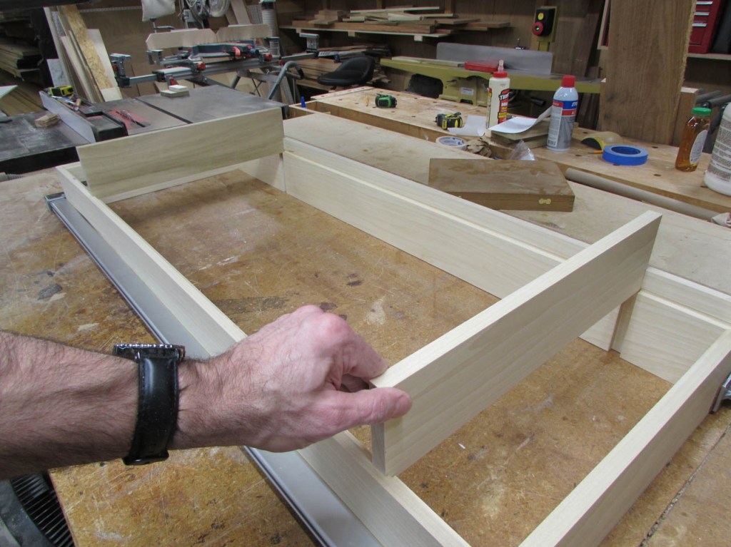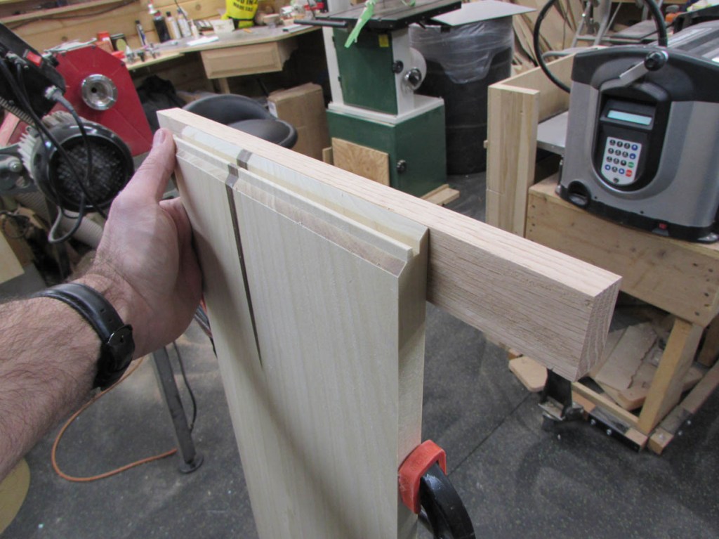I did a dry-fit to make sure everything came out correctly and joined up squarely. Note the locking joint in the picture below. A lot of glue surface is created in this joint so I don’t have the end-grain glue-up I would have with a butt joint or a miter. This is a lot stronger.