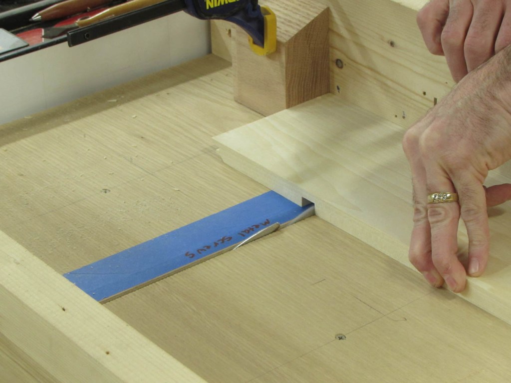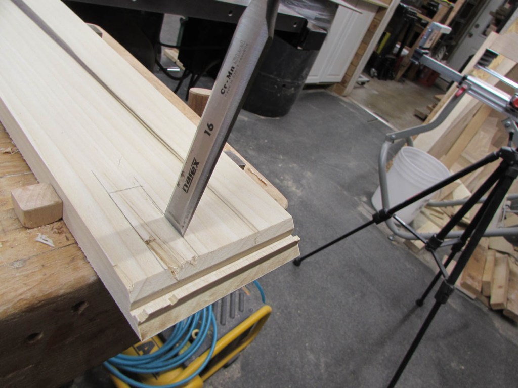 I use a chisel to cut a notch out of the poplar as well as the white board.