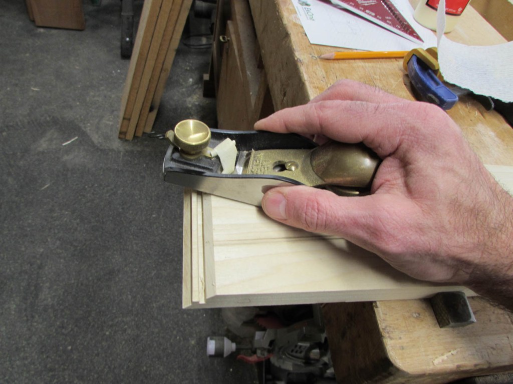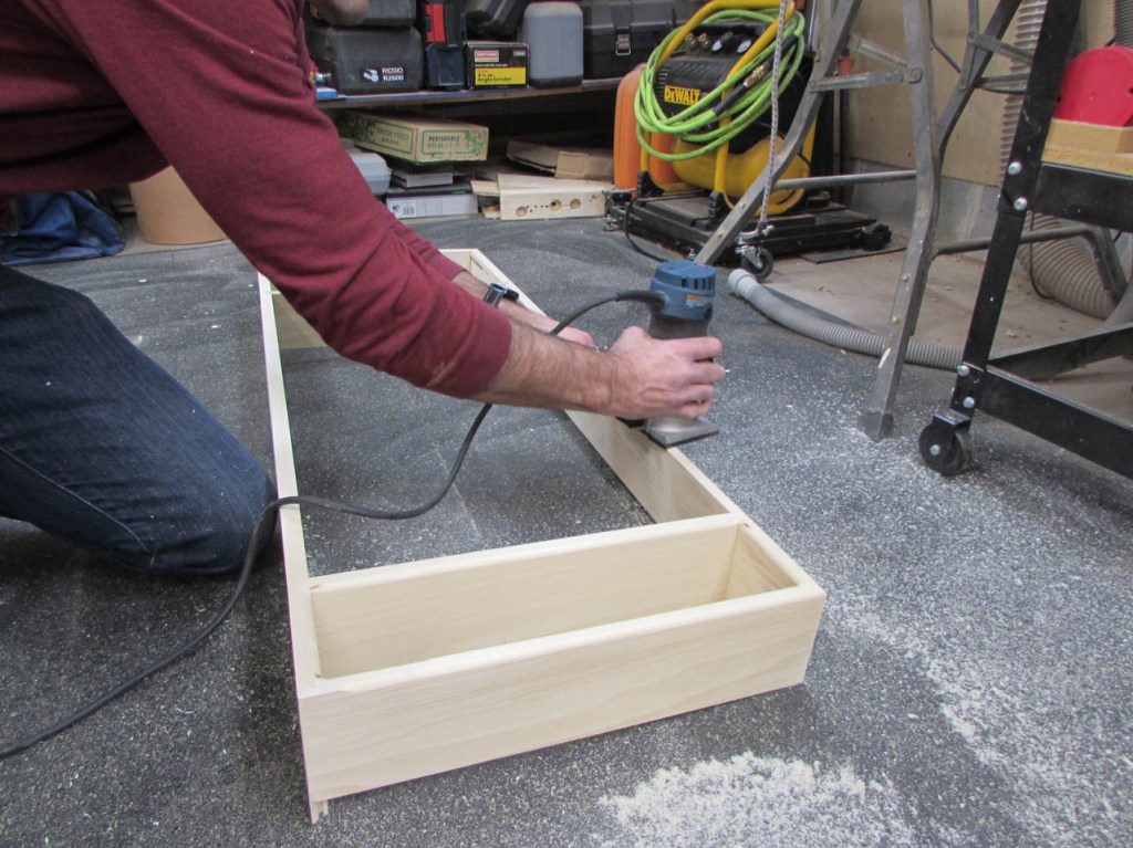 Test fit looked good so I set the white boards aside and put a 1/4″ round-over bit in the trim router.