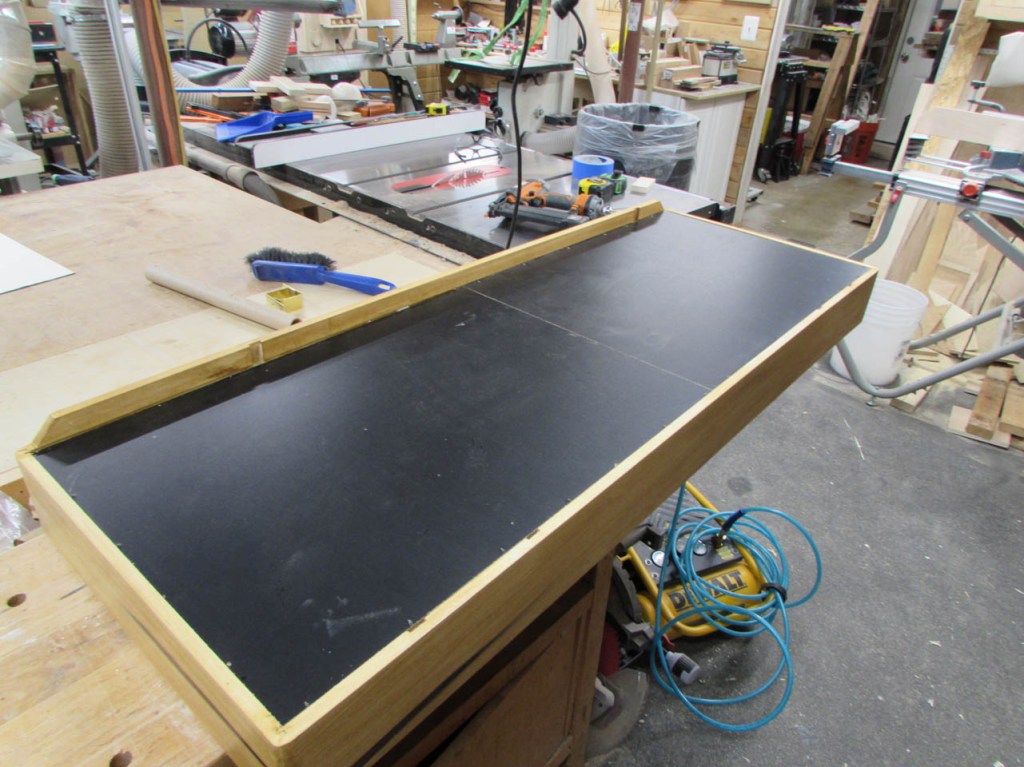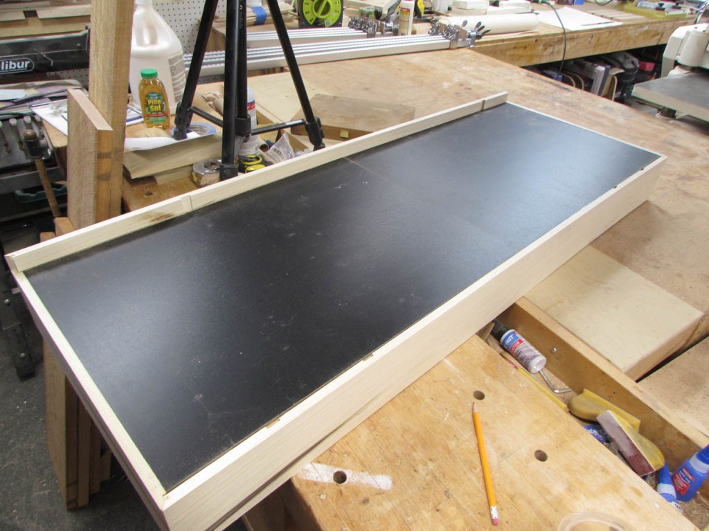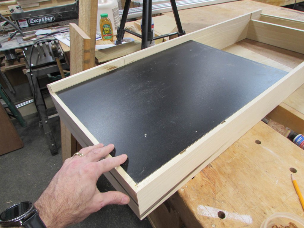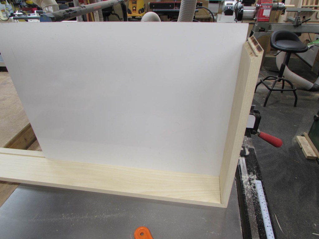 While that was drying, I cut the white board to fit tightly in the bottom rabbet.