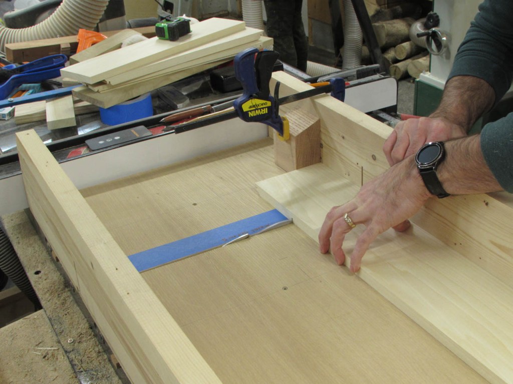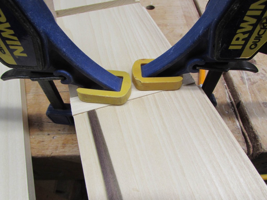 Two of the boards were clamped together to cut down to the longer length of 48″ and the other two were clamped together to be cut for the sides, about 17″ long. I will eventually cut some thinner boards to make the dividers as well but I don’t have a length for them yet.