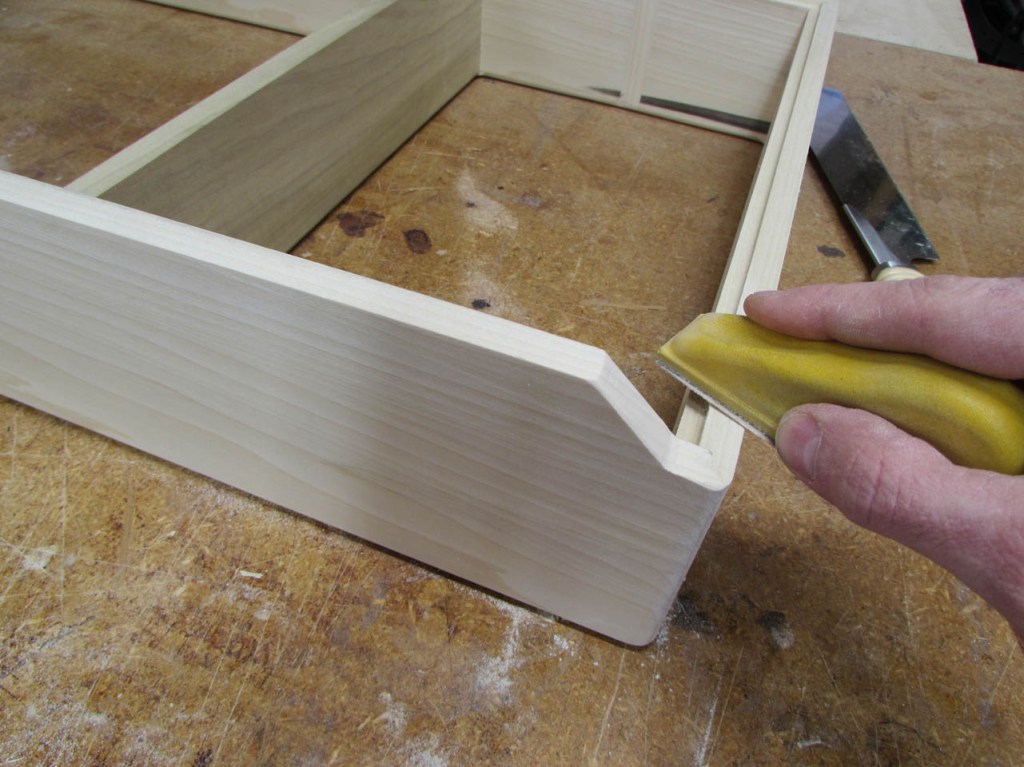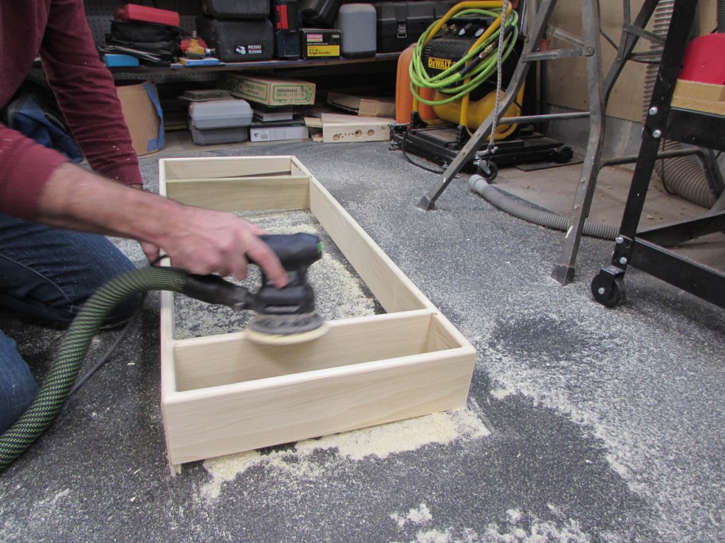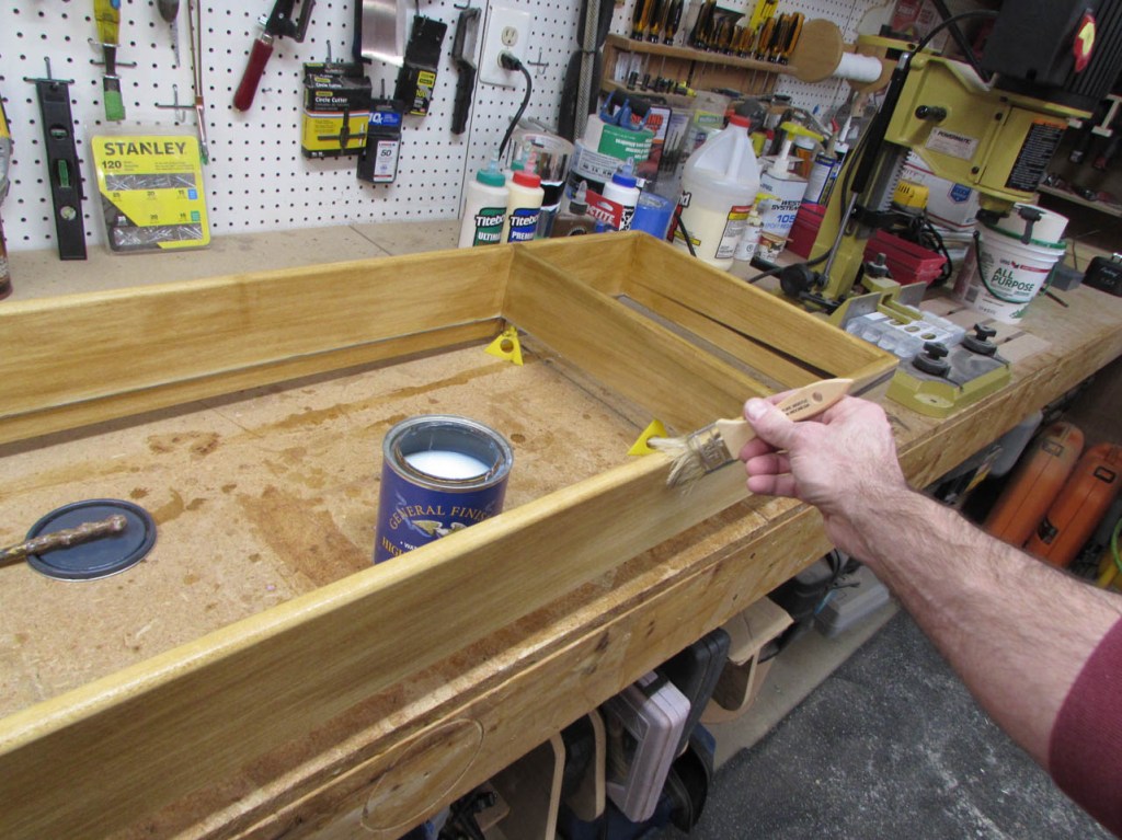 Before attaching the bottom and the hardware, I want to pre-finish the poplar.
