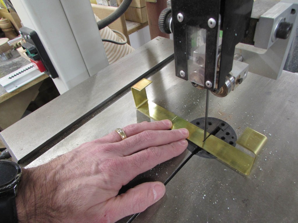After bending a second hook, I marked and cut the brass on my band saw.