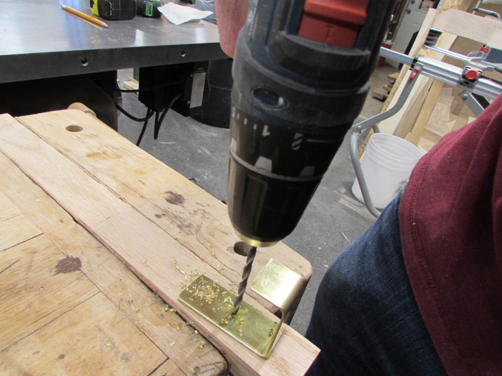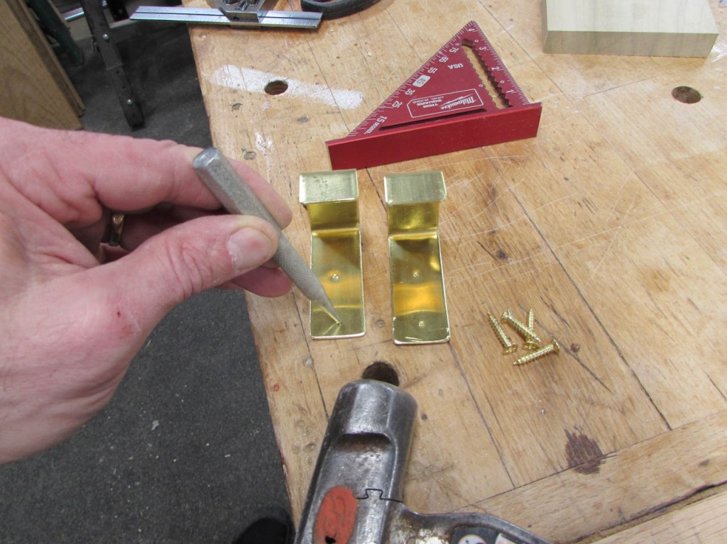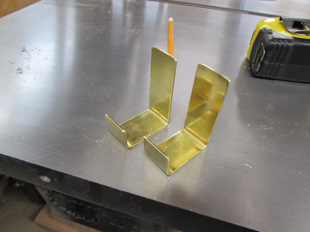 I bought a piece of 1″ wide x 1/16″ thick brass for the hooks.