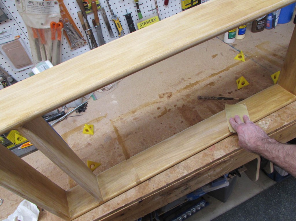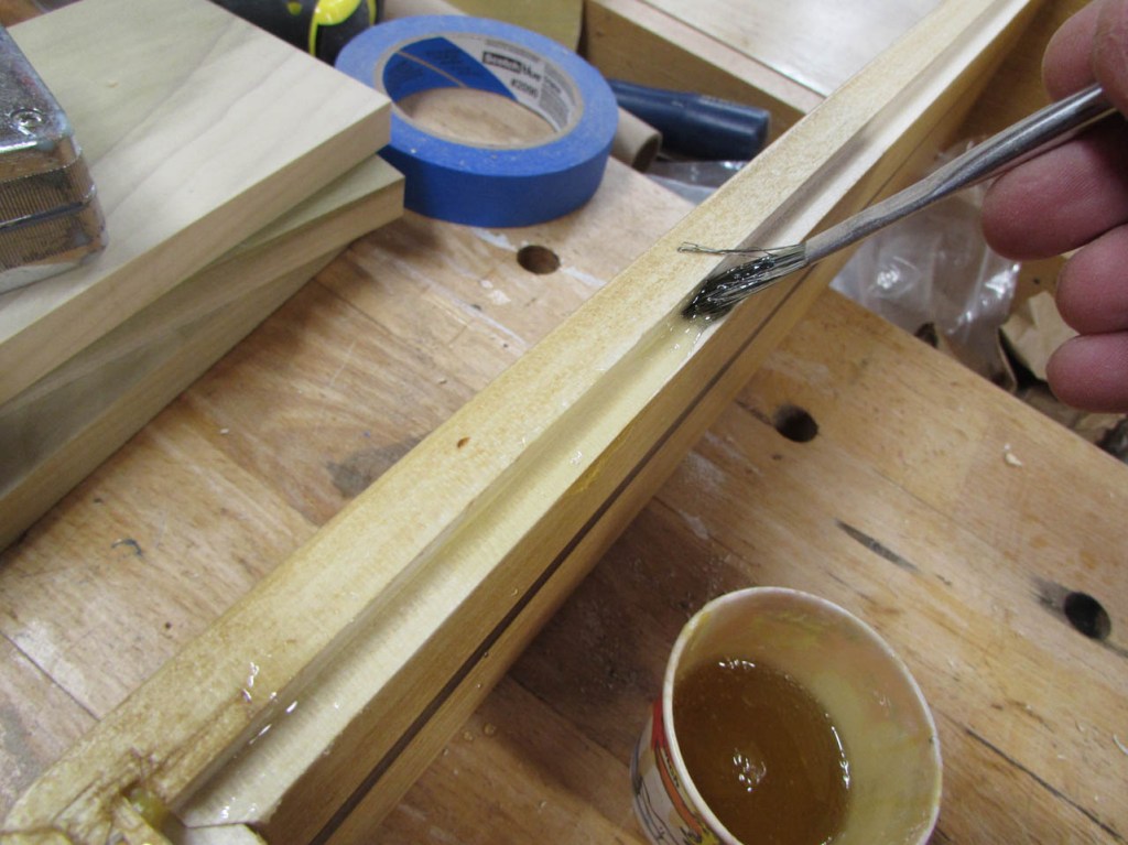 Before staining the wood, I masked off the rabbet so that I could stick glue to it later.