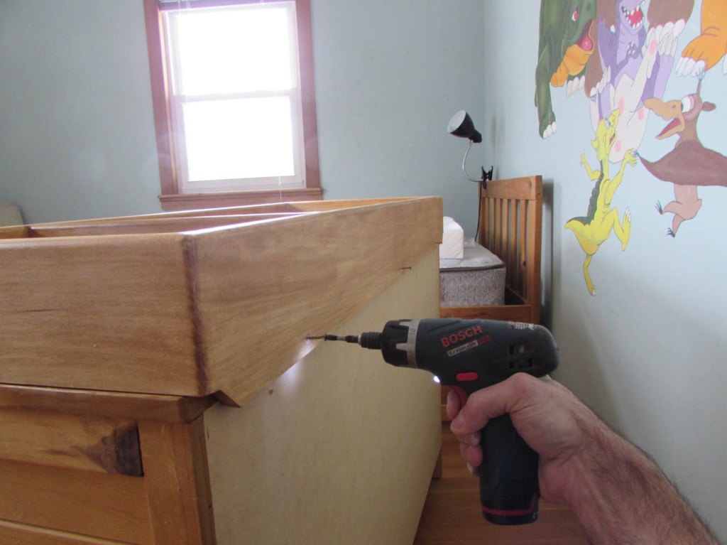 I removed the mirror from the rear of the dresser and laid it out of the way, then I opened the new changing pad.