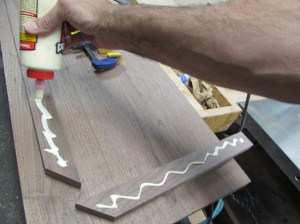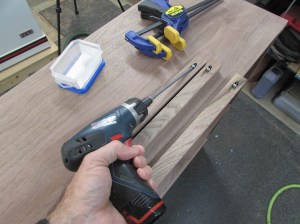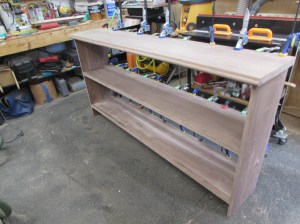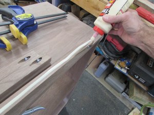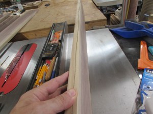 While the glue was drying, I cut more strips to support the front edges. I also added a 3/8″ radius to the bottom edge so there wouldn’t be a sharp edge to bang into.