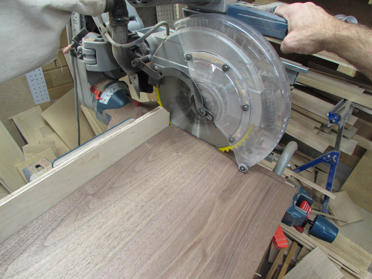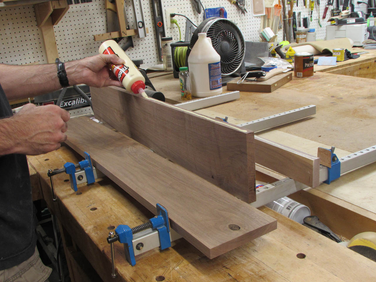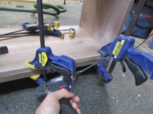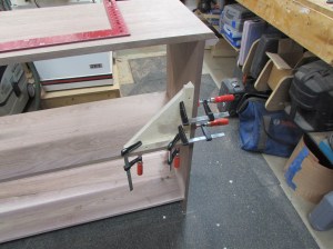 To square the shelf up, while it dried, I clamped a few 90° clamping blocks to each side.
