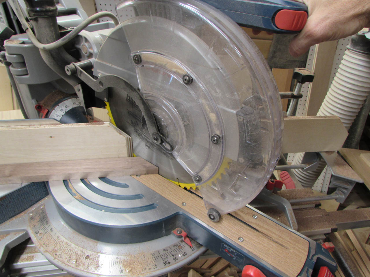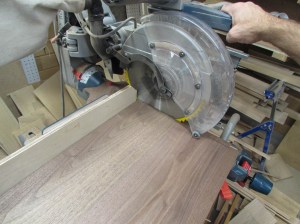I am starting with the top. I cut a couple of 1-1/2″ wide pieces and mitered the corner.