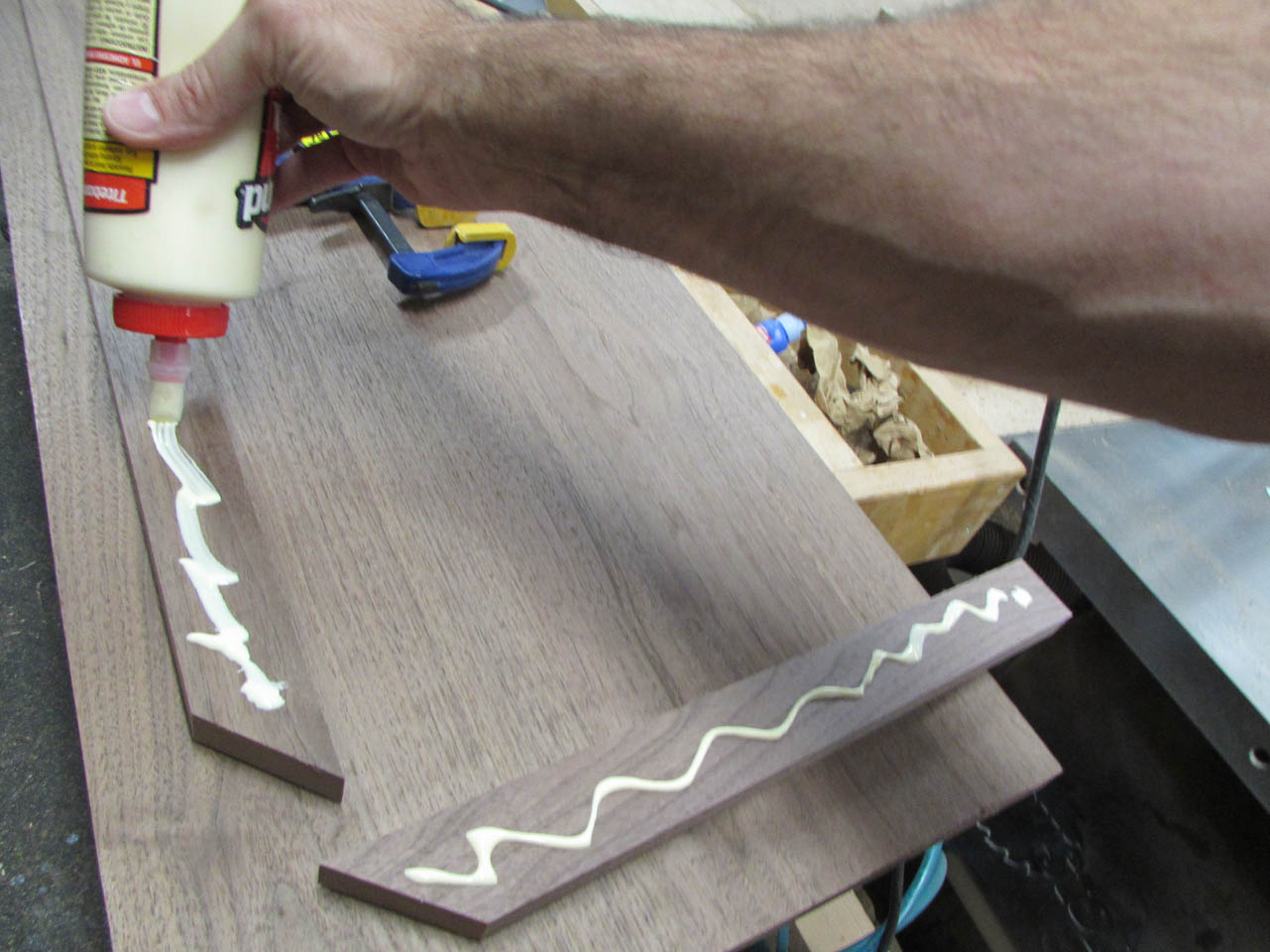Glue was applied, then a lot of clamps.