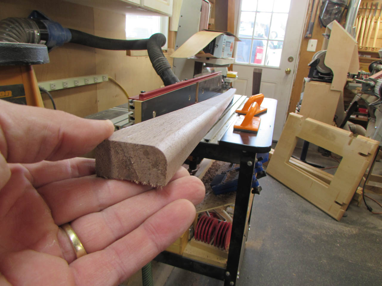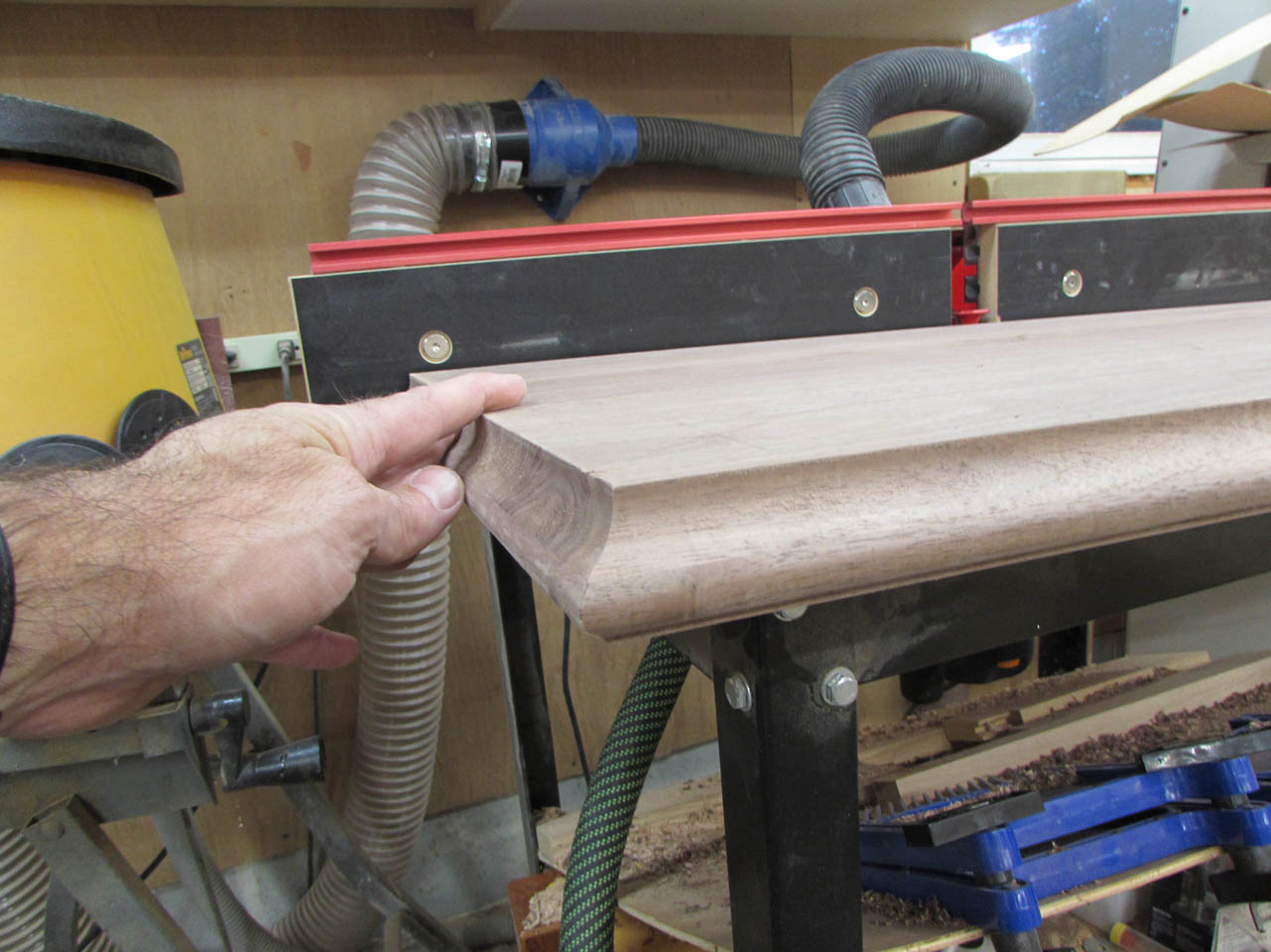 I need to create a large ogee. While the glue is drying, I played around with my router bits until I found a couple that will give me the edge I need.