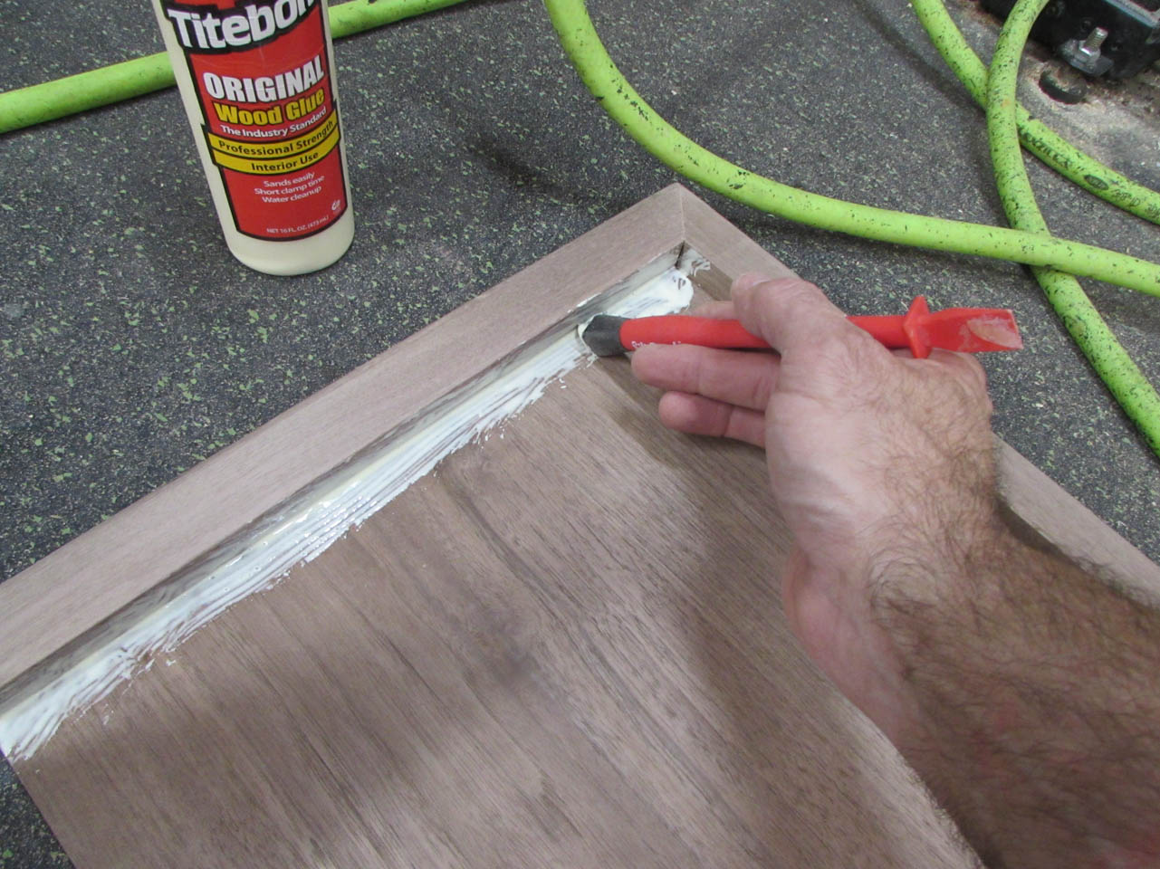I used a wet paper towel to wipe away any excess glue squeeze-out.