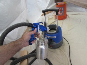 Then I put the respirator back on and fire up the sprayer for a second coat.