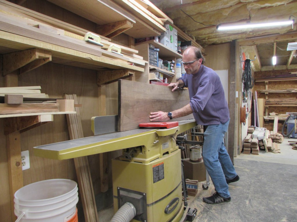 Next, I run both faces through the planer. These boards are too wide to flatten one face on the jointer so I get them down to size on the planer and I will force them straight when I glue up the tops later.