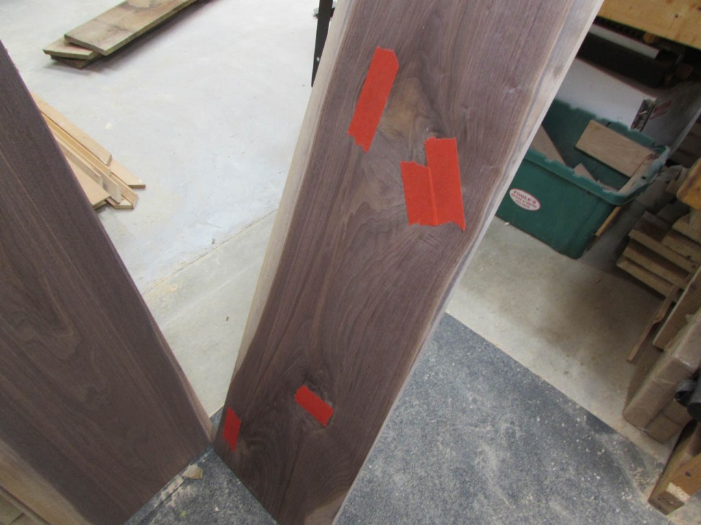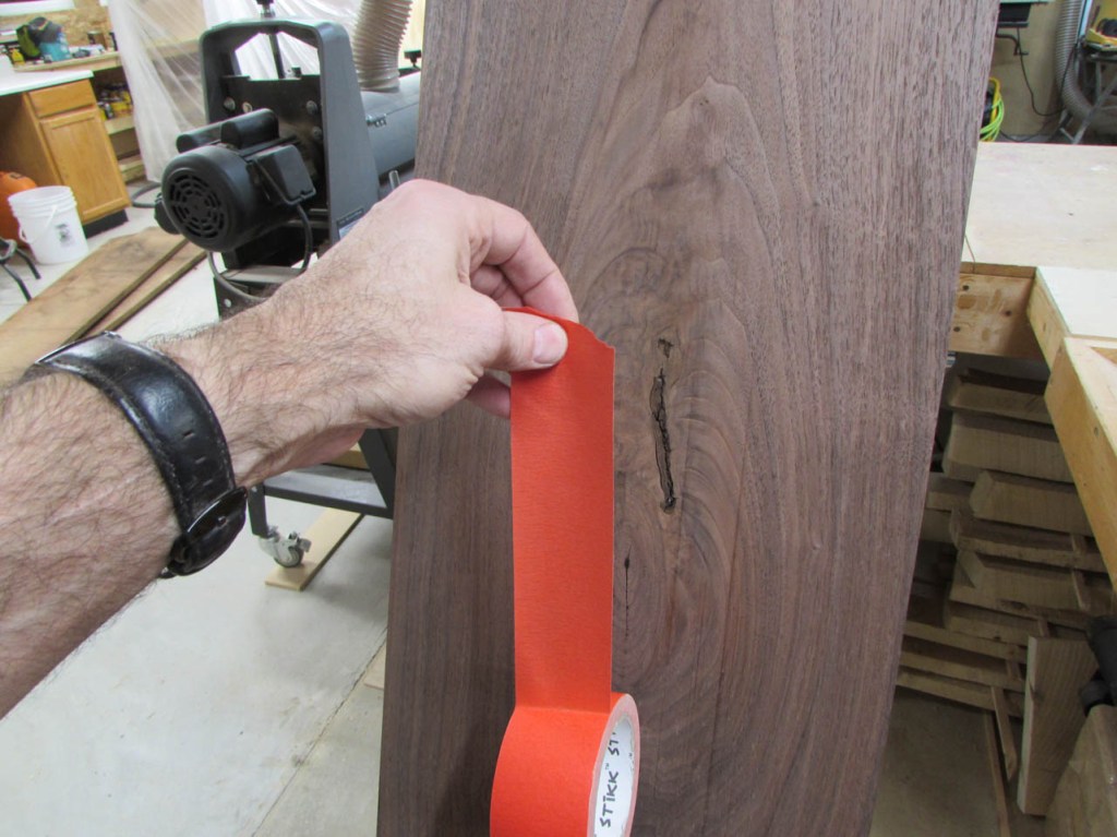 After all of the planing is done, I start taping off the back side of the larger knots so I can fill them with epoxy.