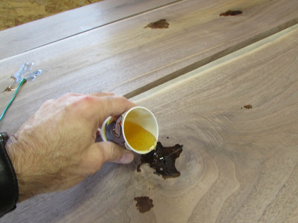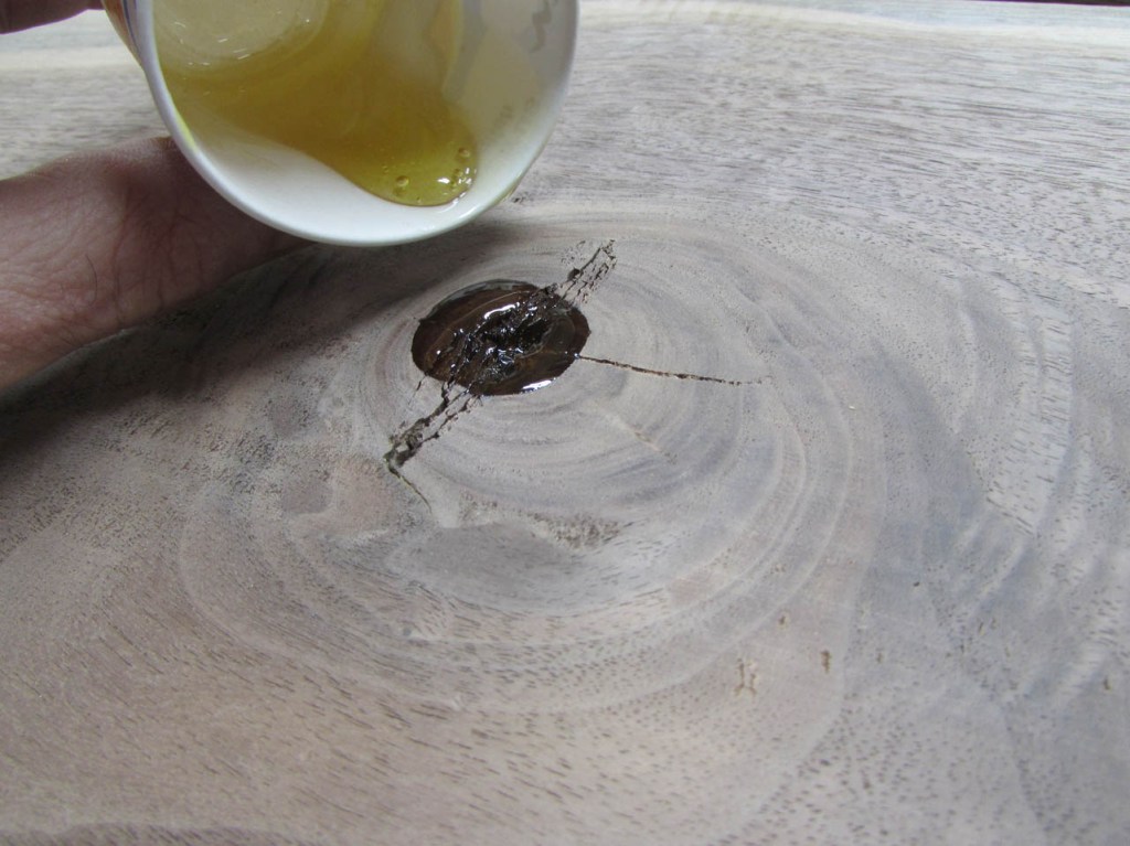 Since this will be a desk, I need the surface to be flat for writing on. The epoxy I use is pretty thin so it seeps all the way into the knots.