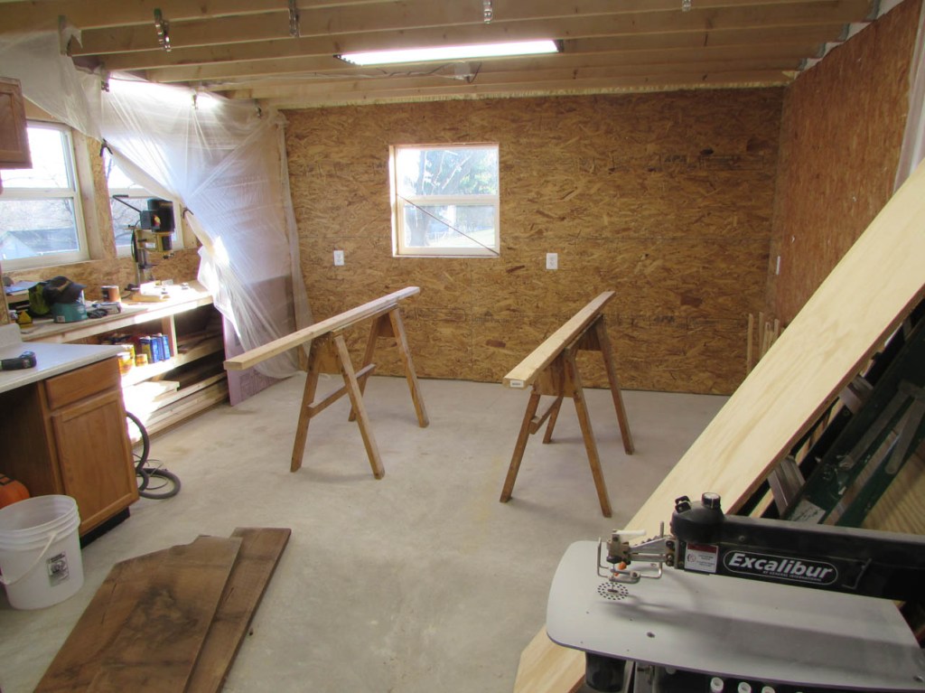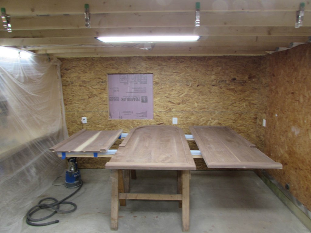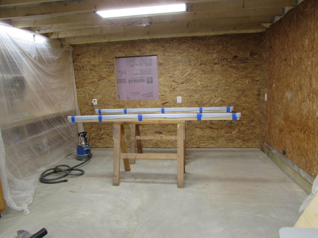 I needed to set up some saw horses to lay out my boards for epoxy and sanding so I expanded into my part-time spray booth area.