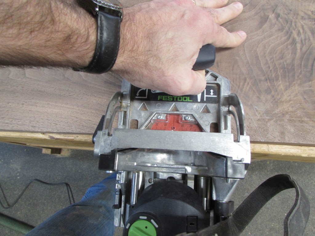 I will be using the largest floating tenons that I have so I setup my Festool Domino and start cutting.