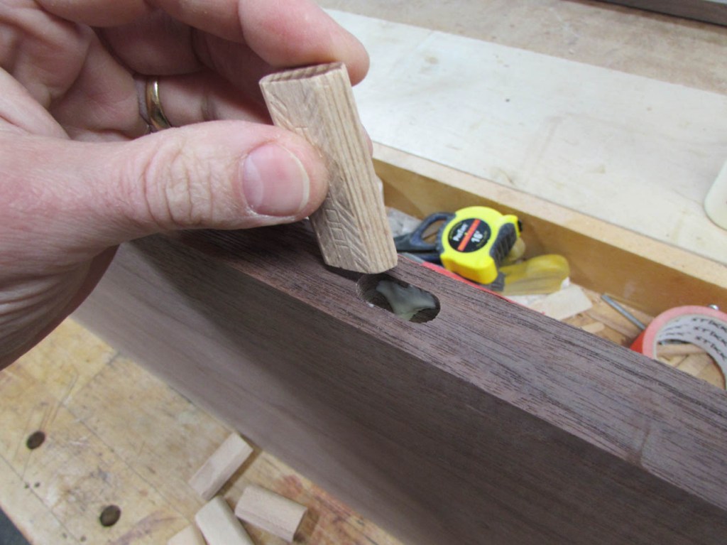 Once all of the mortises are cut, I place a drop of glue on one side and press in the tenons.