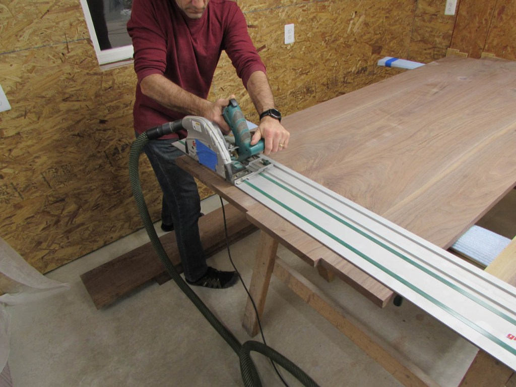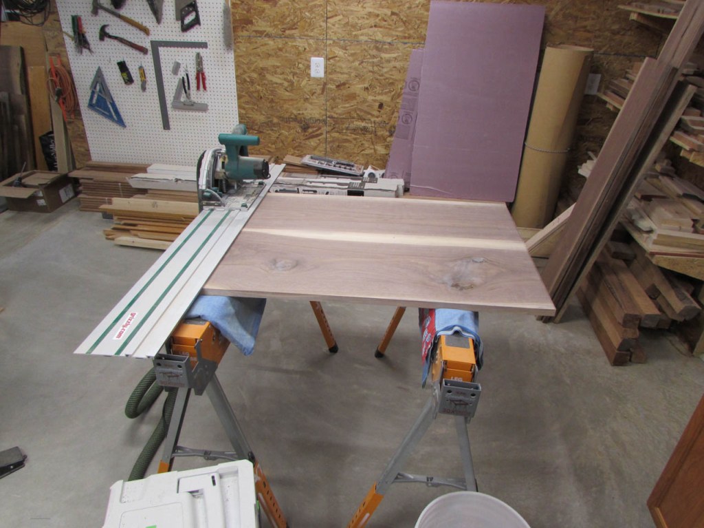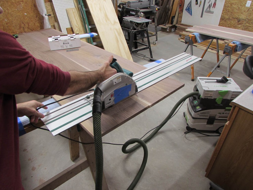 I set up my track saw to make these cuts. It is not an expensive one, but it makes nice, clean cuts.
