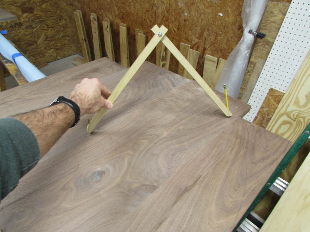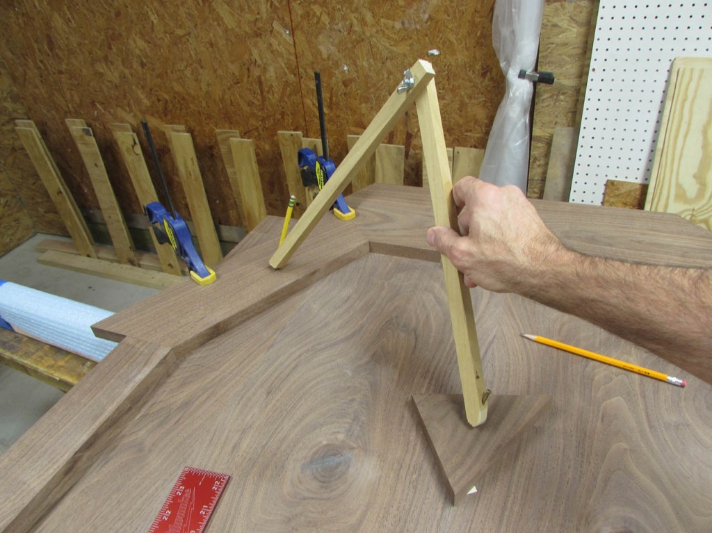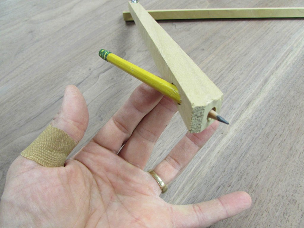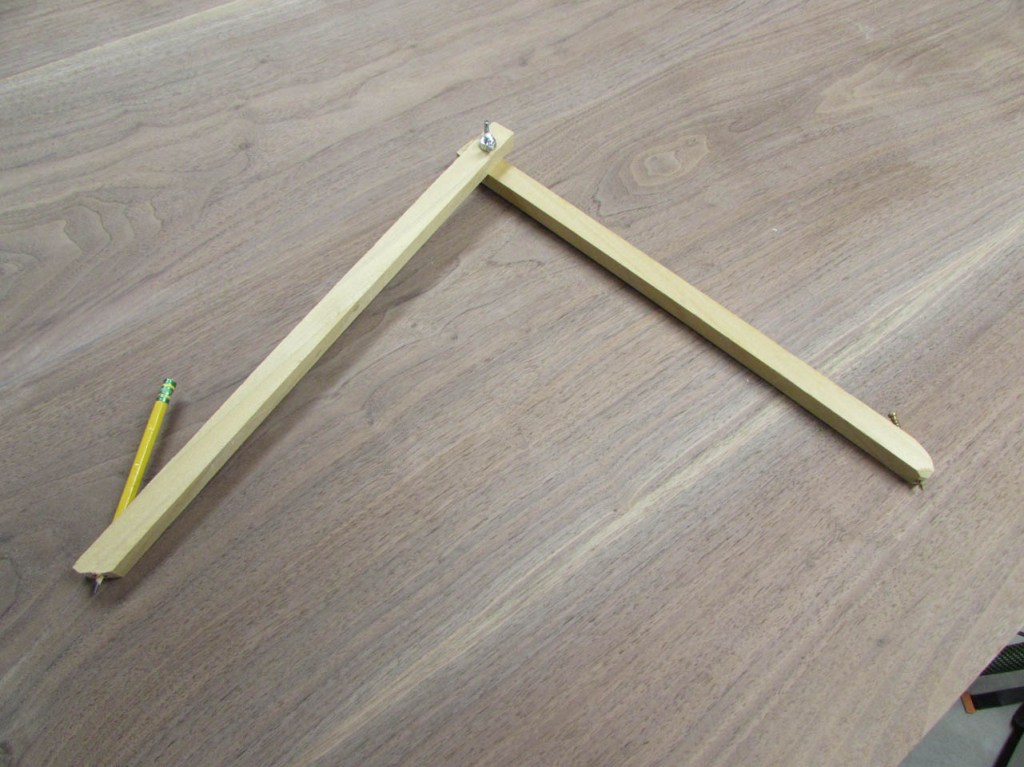 To lay out the curve, on the end of the peninsula, I will need a very big compass. Since I don’t have one that big, I just made one.