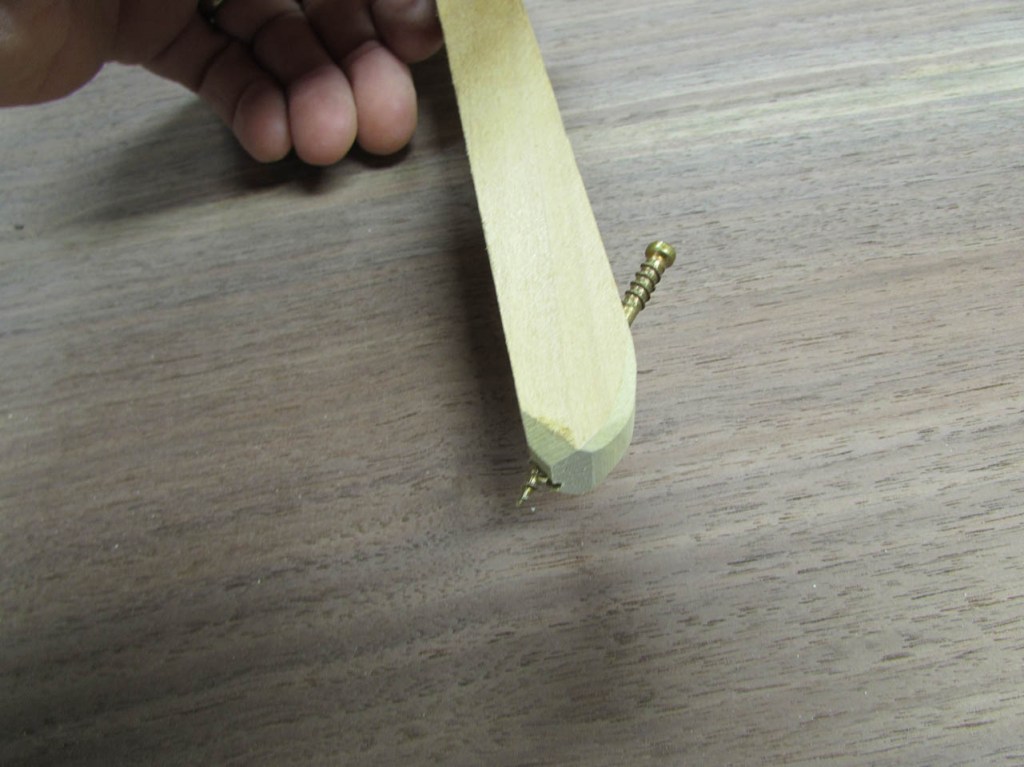 The point is a finish screw and the pivot is a machine screw and a wing-nut.