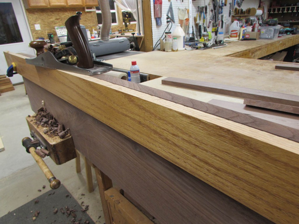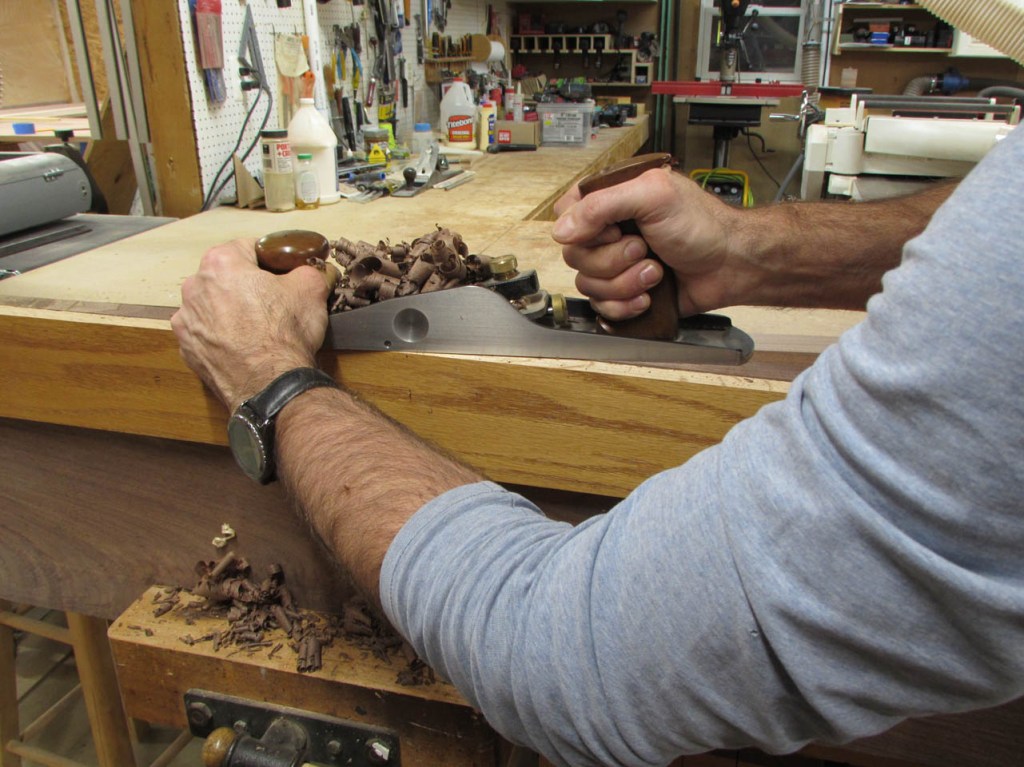 It was out almost 1/4″ at one point. I decided to leave the straight edge on it and use my jack plane to take the high spot down.
