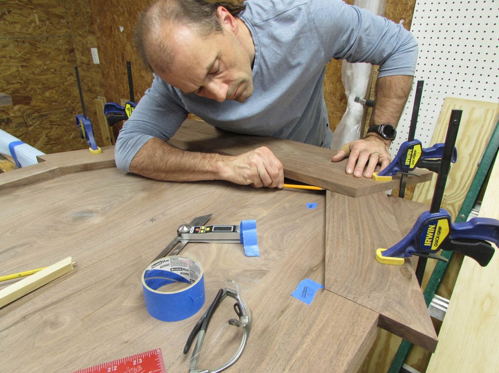 At this point, I can clamp it all together into it’s final orientation so I can mark where the mid section hits the sides.