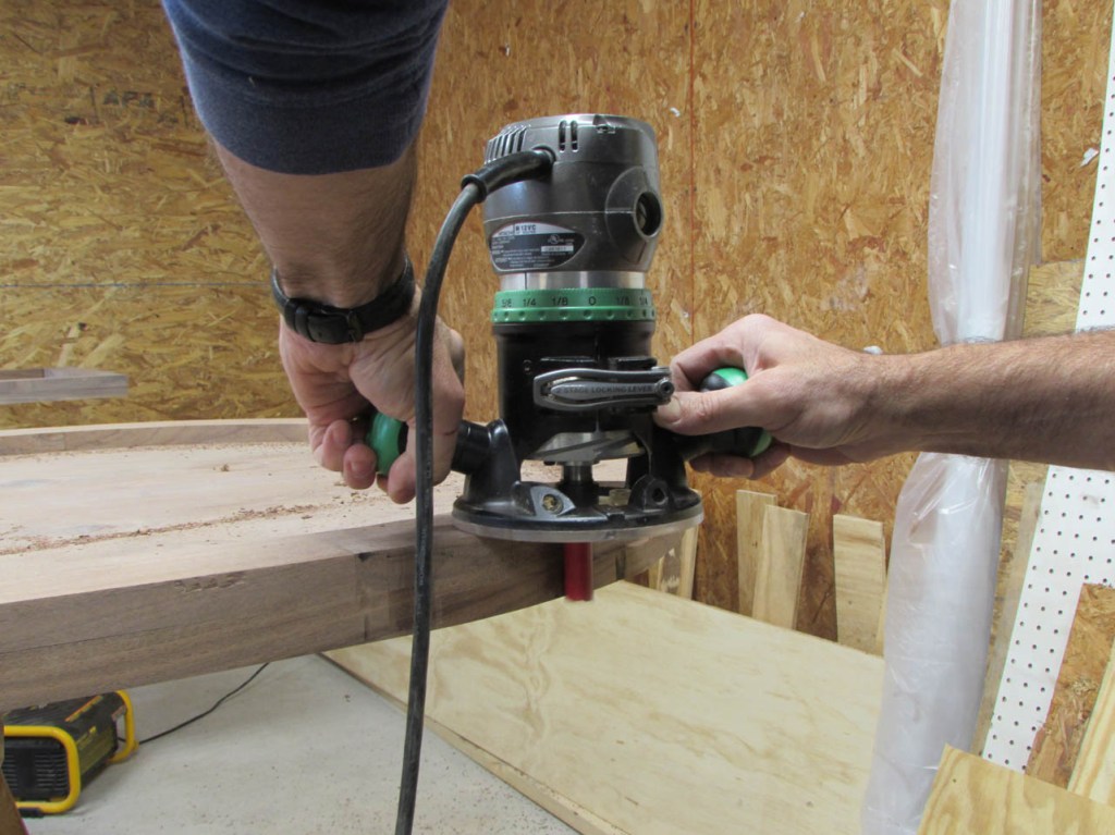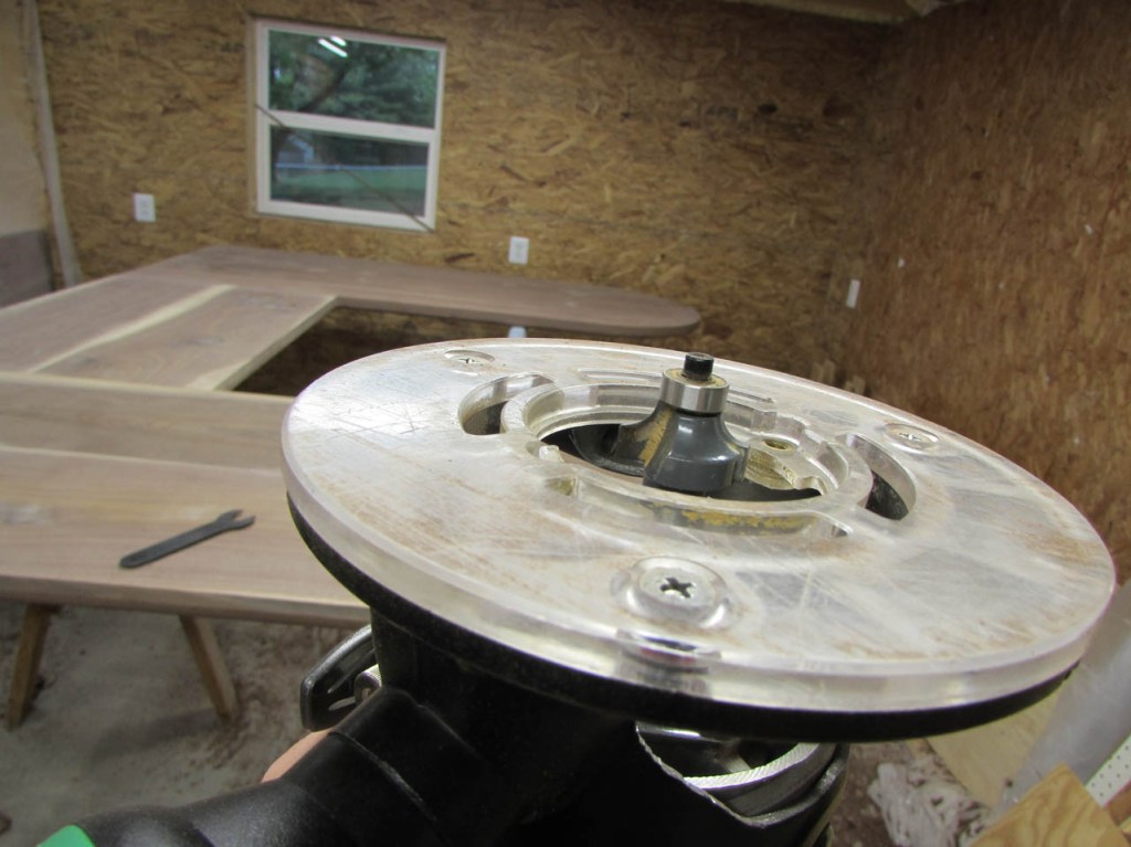 Then I used a 1/4″ round-over bit to radius the edge of the desk all the way around.