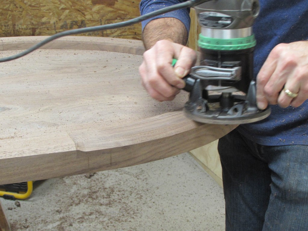 I ran the 1/4″ along the inside edge and the 3/4″ around the outer. I did the outer in two passes just so I didn’t take off too much at one time.