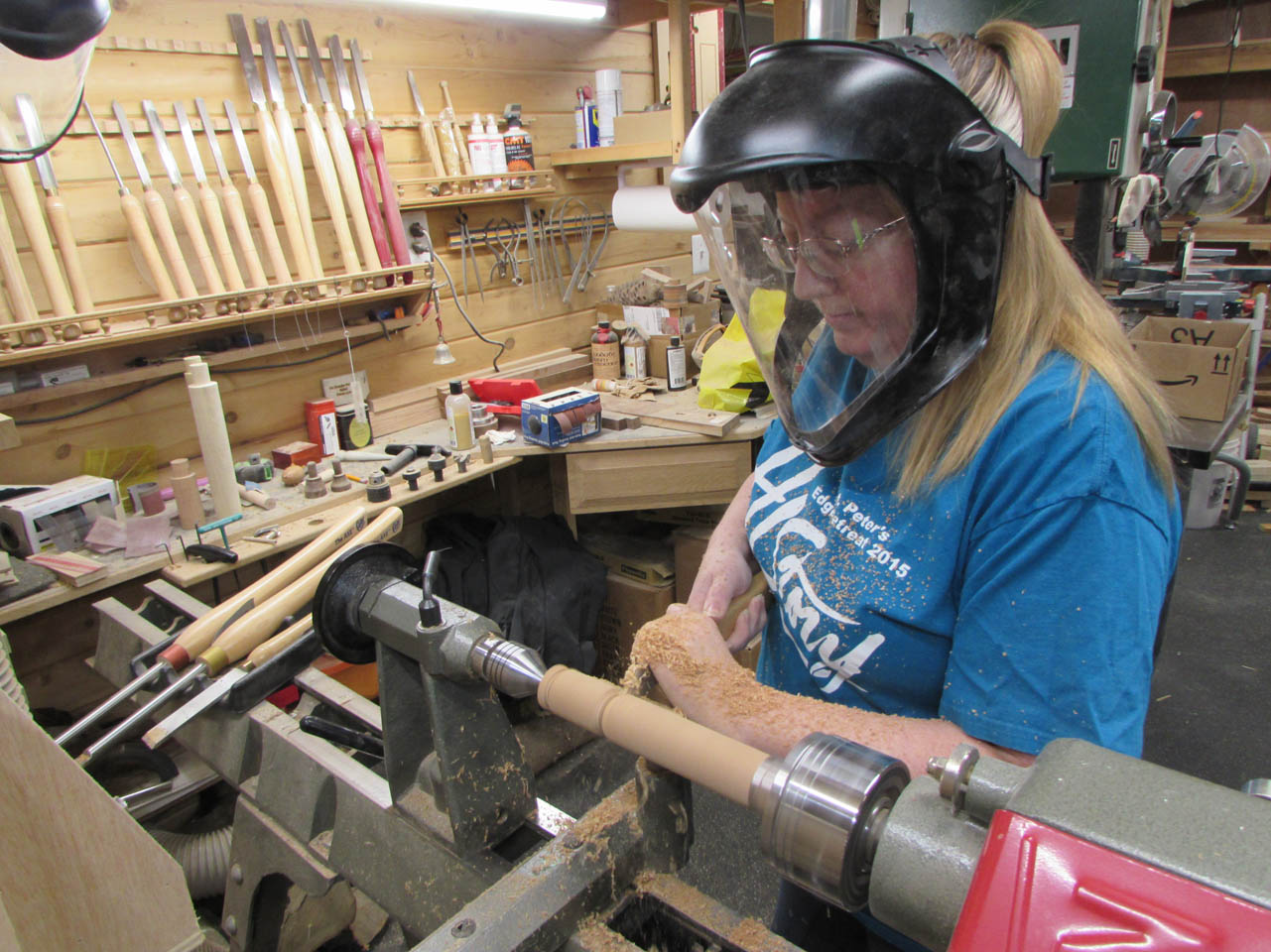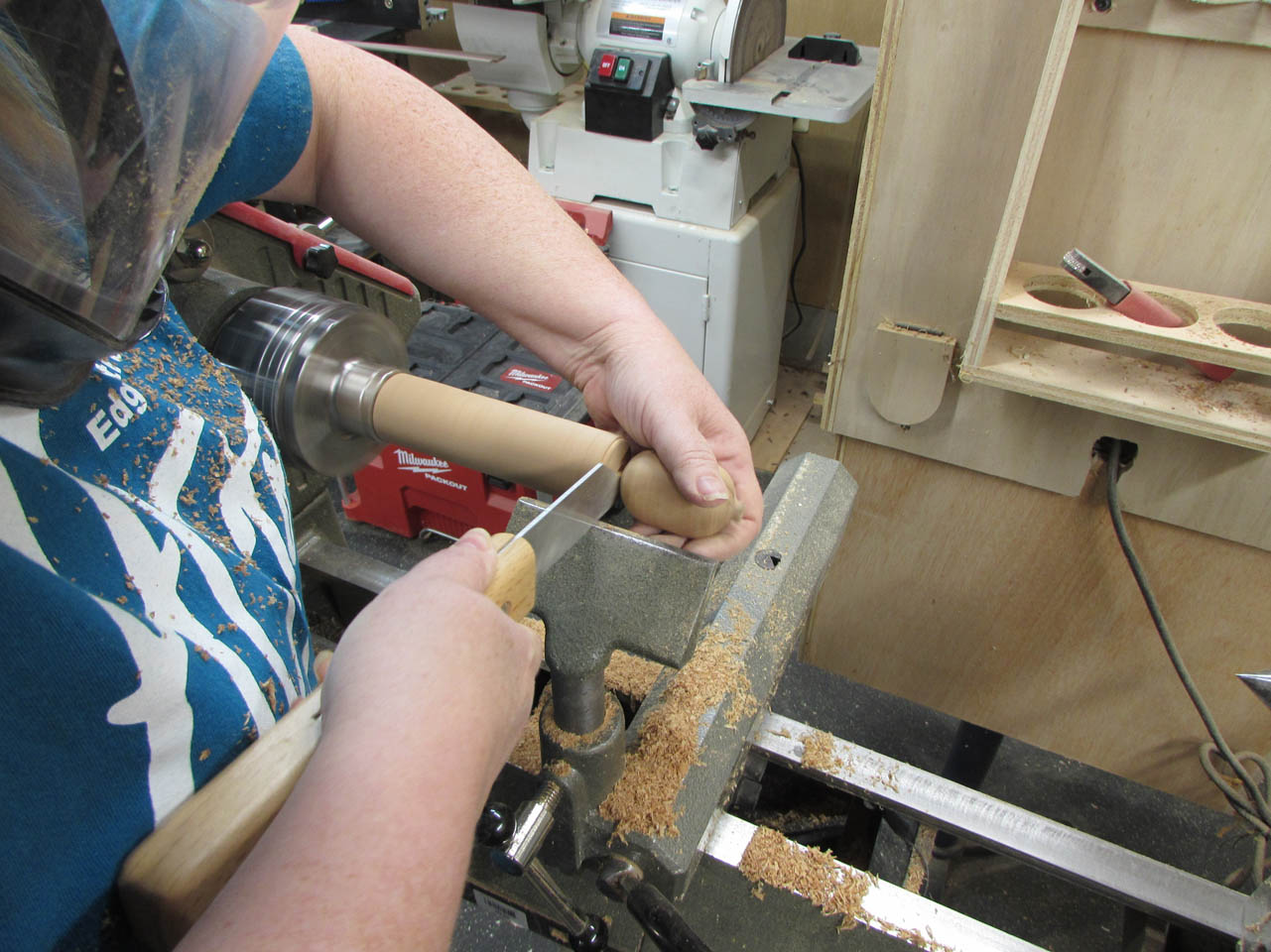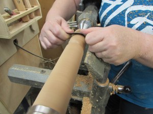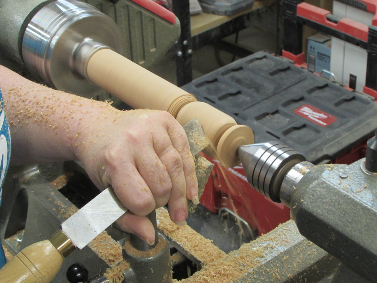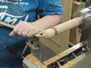 Then used a parting tool to remove that pig and handed it to me to finish cleaning up while she started the next one.