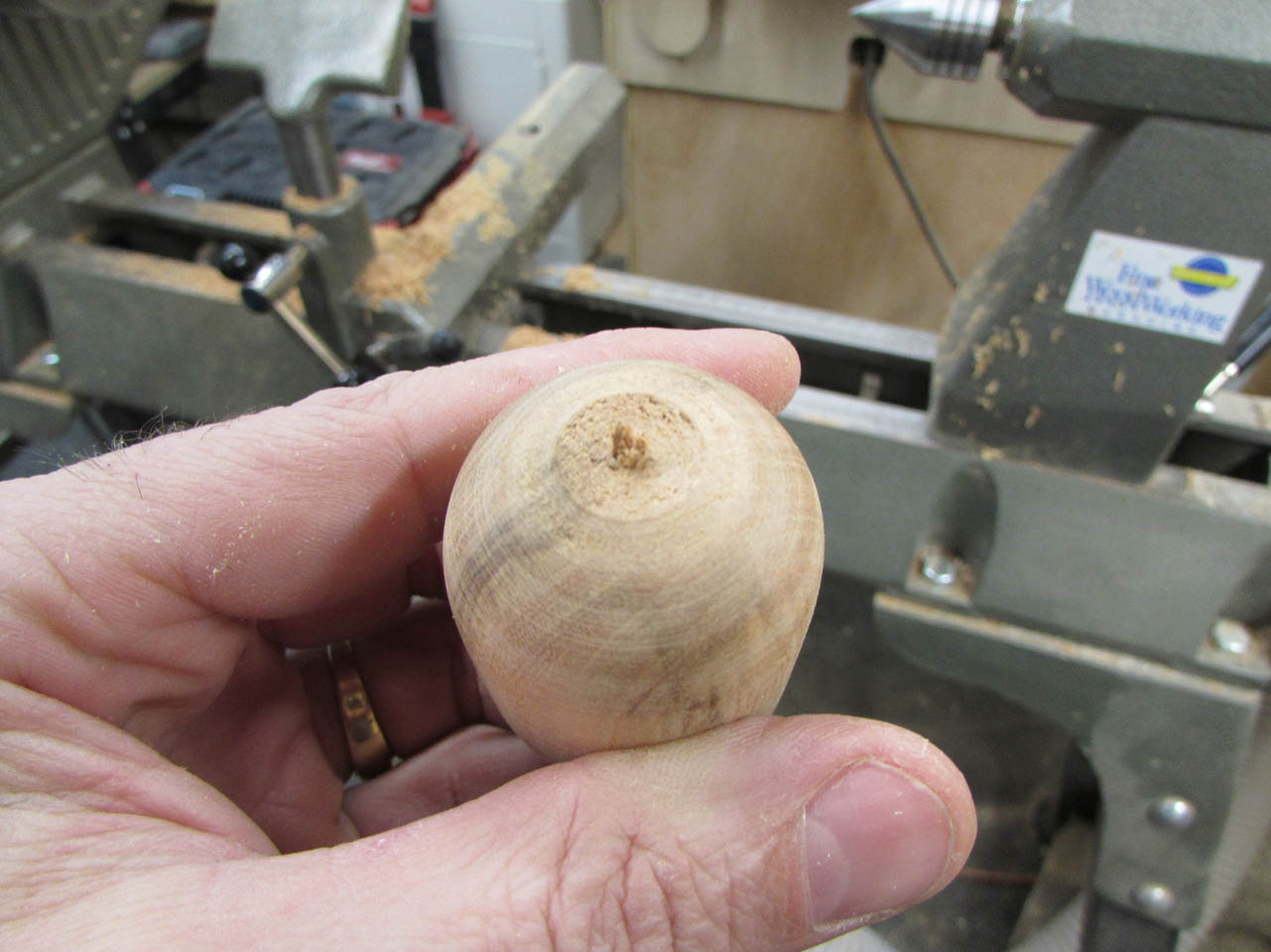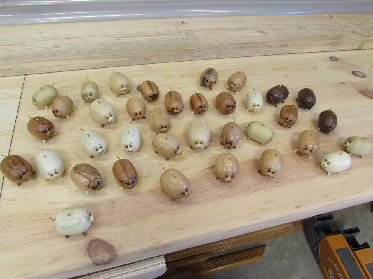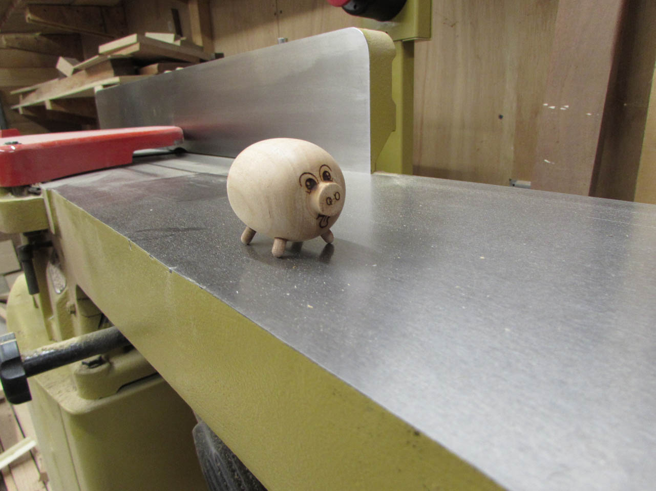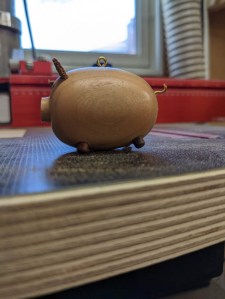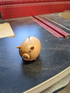My wife wanted to help and her main tool, in my shop, is the lathe. So we went down to the shop and started playing around. This is the prototype pig that we came up with.