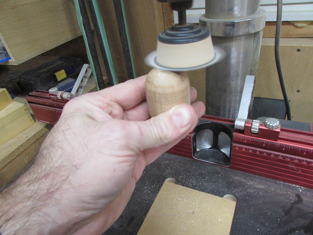 Then I polished up the bottoms on the drill press, sanding up to 400 grit.