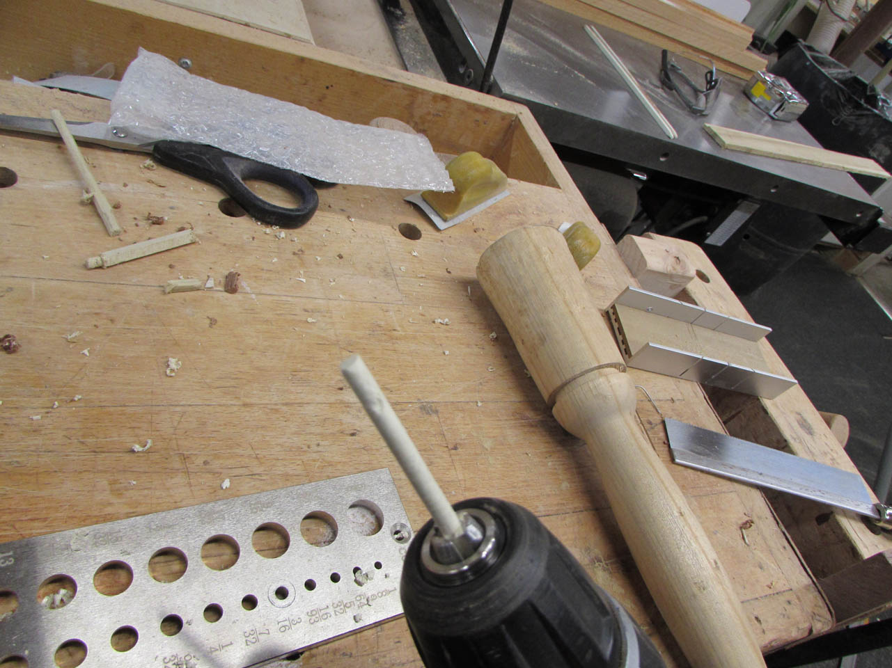 To mass produce the legs accurately, I bought a doweling plate.