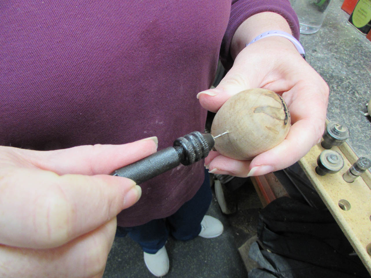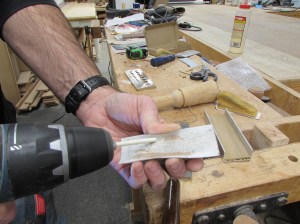 To install the ears, I used an awl to create the starting point for the tiny drill bit. If I don’t, the bit wanders along the curved surface.