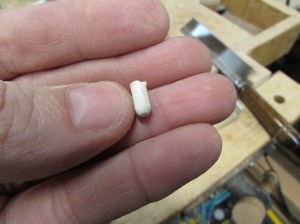 While the dowel was still in the drill I sanded the tip.
