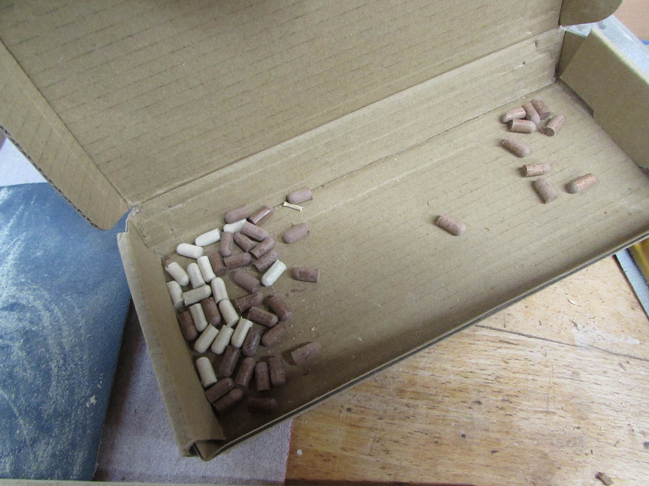 Next, I pushed a paperclip through the pilot hole and knocked out the dowel.