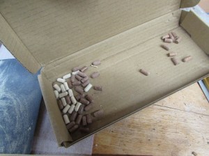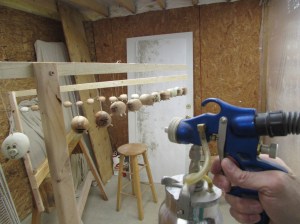 Then I started spraying and they bounced all over the place. Dumb idea… I wound up holding each one still to spray it all over. That lead to a hand covered in poly. A glove would have been a good idea…